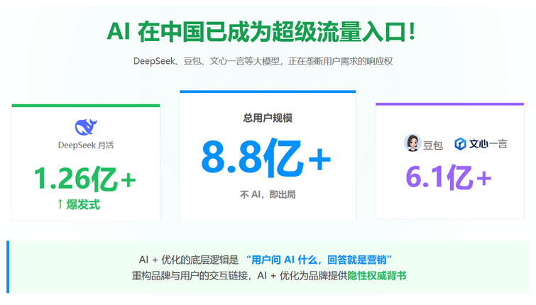 内容分发:将优化后的内容分发至DeepSeek、豆包等主流AI平台,覆盖用户高频提问场景。