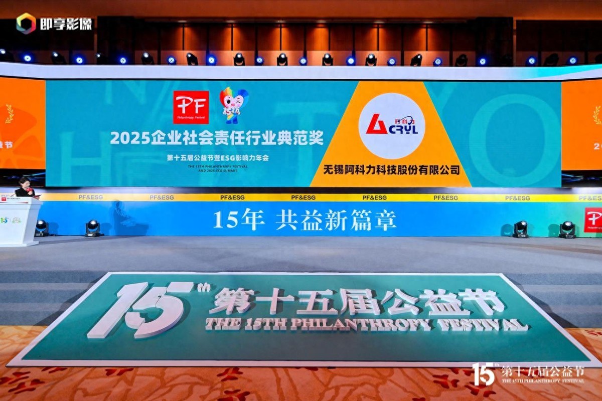 近日,备受瞩目的第十五届公益节暨2025 ESG影响力年会在北京圆满落幕。作为国内公益慈善领域极具权威性与影响力的年度盛事,本届公益节汇聚了千余位公益领袖、商界精英与专家学者,共同探索企业社会责任与可持续发展的全新路径。凭借在社会责任领域的扎实实践与突出贡献,经江苏省妇女儿童福利基金会推荐,无锡阿科力科技股份有限公司(以下简称“阿科力科技”)荣获 “2025企业社会责任行业典范奖”,公司联合创始人、董事崔小丽女士受邀出席盛会,代表企业领取这一重磅荣誉。