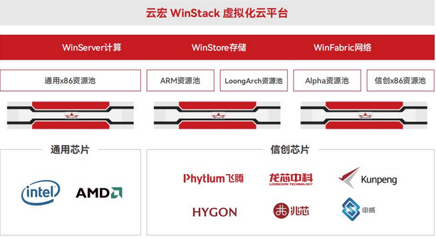 面对上述挑战,云宏CNware虚拟化平台展现了突出的“全栈兼容”能力。其产品不仅广泛支持RedHat、CentOS、Windows Server等系列的多个老旧版本,更在硬件生态与新兴算力层面实现了强大包容性。