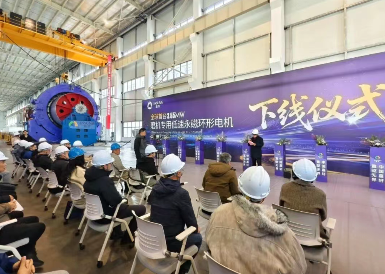 2月10日,江苏嘉轩智能工业科技股份有限公司(以下简称“嘉轩”)举行了磨机专用低速永磁环形电机下线仪式,全球首台3.55MW磨机专用低速永磁环形电机正式亮相。