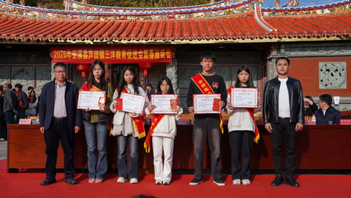 2月19日,安溪县芦田镇三洋教育促进会颁奖大会圆满举行。活动以传承祖训、兴学助学为宗旨,融敬祖尊贤之礼、奖优励学之义于一体,用温情善举凝聚爱心合力,以榜样之光照亮求学征途,让崇文重教的传统在乡土大地焕发新的生机。