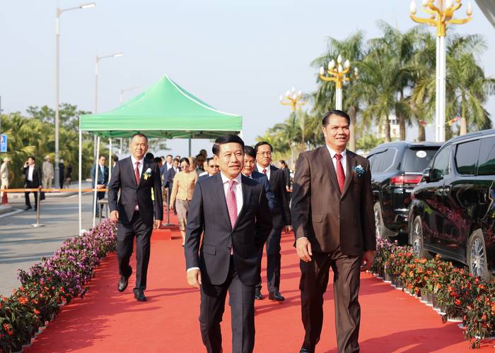 仪式上,老挝民航局局长万赛·星康向博胶国际机场总经理田铜·苏帕颁发了国际机场认证证书。随后,老挝公共工程与运输部部长烈莱·西维莱郑重宣布:博胶机场即日起正式升格为国际机场。