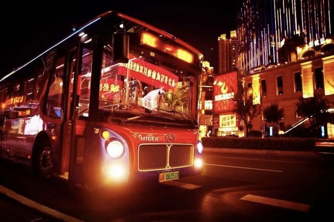 作为国内成熟的景区观光车型,海格风景系列观光巴士早已服务上海迪士尼、广州长隆野生动物园等近百家5A级景区,是中国“交旅融合”探索的先行者。落地重庆后,凭借专利复古造型与鲜明色彩设计,迅速成为刷屏社交平台的“网红巴士”:主色调红色呼应重庆热情火辣的城市气质,蓝色点缀强化视觉冲击,与山城夜景相得益彰。