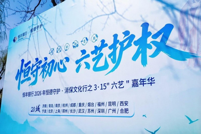 2026年“3·15”期间,恒德守护·消保文化行之3·15“六艺”嘉年华在全国20城联动启幕,以传统文化赋能金融知识宣传普及,让金融知识走进20座城市的街头巷尾与百姓心间,帮助消费者提高对金融产品服务的认知能力和自我保护能力。未来,恒丰银行将坚守“金融为民”初心,持续探索创新宣传教育形式,深化多方协作机制,开展消保文化行系列主题活动,持续扩大“恒德守护”消保品牌影响力,为护航金融安全、服务民生福祉贡献恒丰力量。
