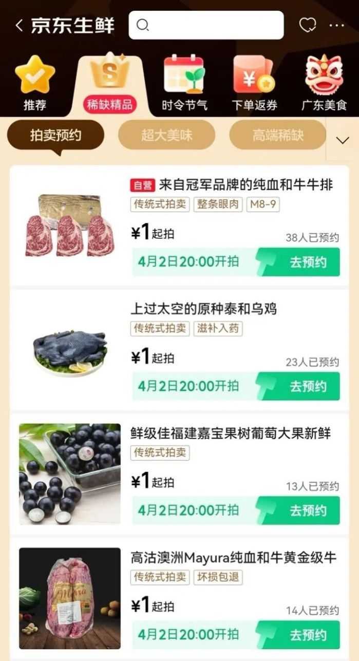 “原来京东上有这么多有意思的生鲜好物,1元起拍太好玩了。”“每晚8点蹲守京东生鲜拍卖,能玩能省,还能尝鲜。”这是参与拍卖的消费者最真实的感受。在这里,每个人都有机会以亲民价格拍下猫山王榴莲、新疆有机牛等高端生鲜,也能邂逅电白千禧12°小番茄、巨无霸蓝莓等稀缺美味。每天3—5款精选好物上新,让生鲜消费不再是简单的采买,更成为一场充满期待的趣味体验。