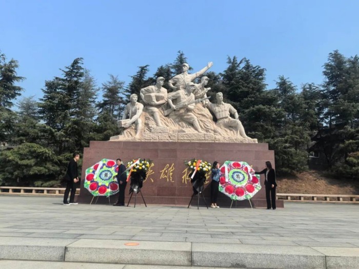 大家在祭奠广场英雄群雕前整齐列队,举行庄重的献花圈仪式。肃立默哀、三鞠躬,以最朴素的方式缅怀革命先烈,追忆他们舍生取义的崇高壮举。
