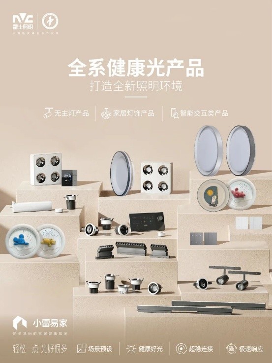 • 客厅/全屋:小雷易家全屋健康照明解决方案是最大亮点——0门槛智能,快速设置,一键切换全屋场景模式,全系列统一伴生适然光健康标准,老房焕新也能轻松落地。