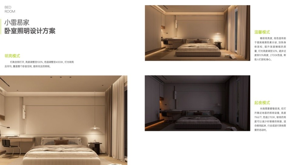 • 卧室:支持低色温柔光情绪彩调节,助力自然入睡,不干扰生长激素分泌。