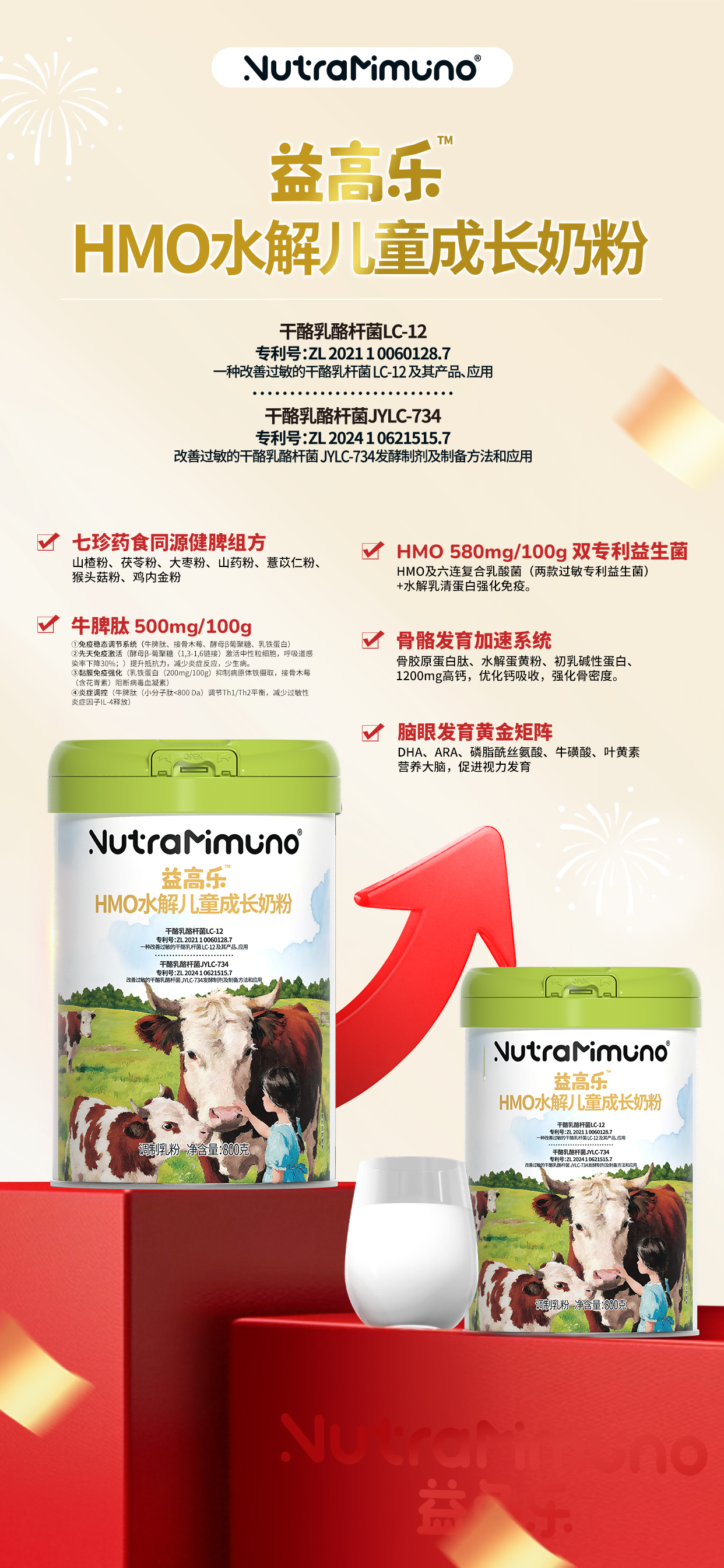 面对低敏市场的迫切需求与HMO配方的政策机遇,益高乐推出的HMO水解儿童成长奶粉以四重低敏逻辑构建了系统化的产品解决方案。